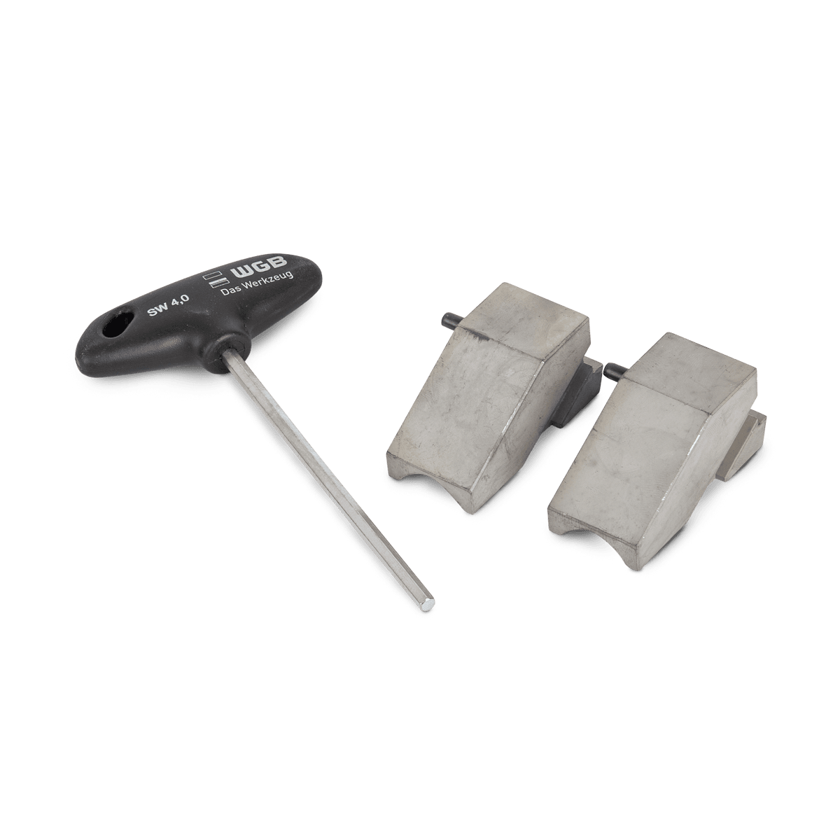 Das außenliegende Klemmbackensystem macht es besonders einfach, die Klemmbacken zu wechseln. Bei den RAK-Maschinen benötigen Sie kein Spezialwerkzeug, sondern können die Klemmbacken innerhalb von wenigen Minuten wechseln und weiter arbeiten.