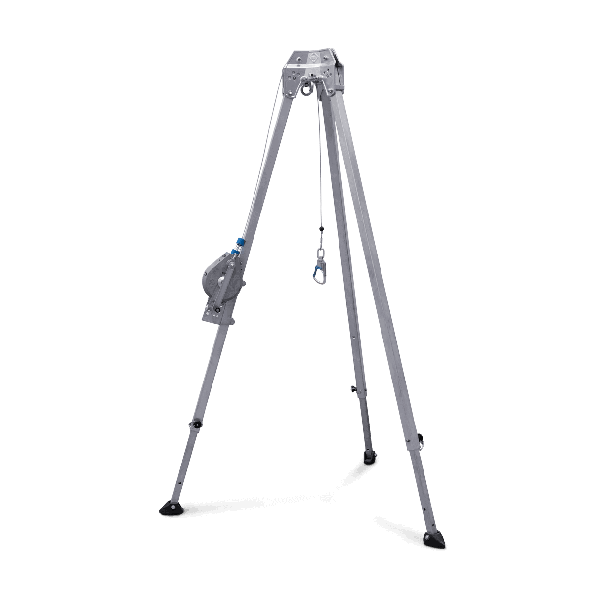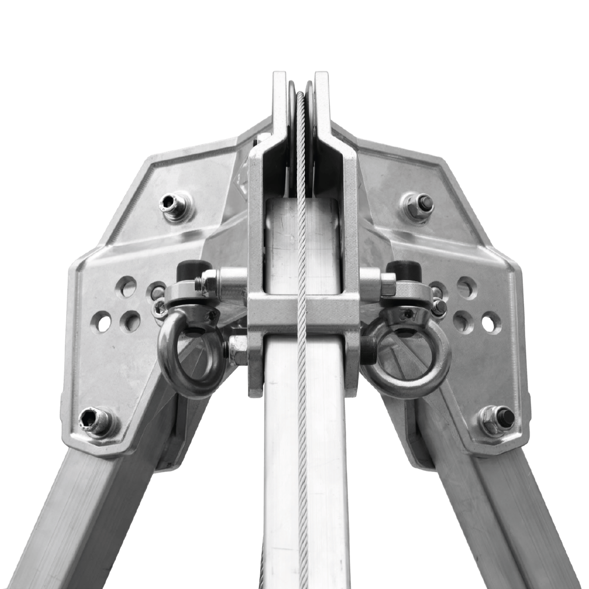 Vorteile des teleskopierbaren Dreibockes aus Aluminium sind die hohe Tragkraft von bis zu 300 kg (oder 2 Pers.), die 3 integrierten Umlenkrollen bei nur 26 kg Eigengewicht. Er ist leicht aufzubauen, besitzt keine losen Teile und ist im Einsatzfall innerhalb von Minuten auf- und abgebaut. Mit den einzeln verstellbaren Standbeinen können Sie eine Aufstellhöhe von 2,5 m erreichen.