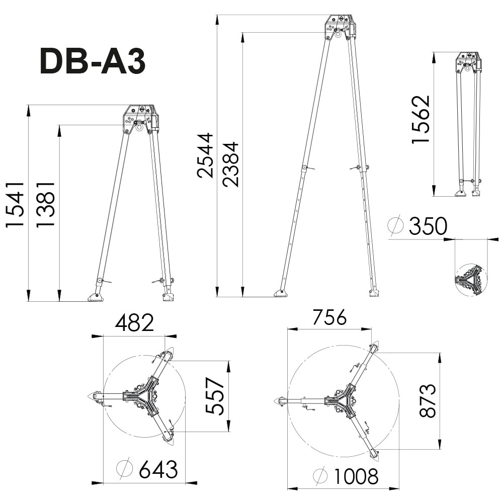 Der Dreibaum DB-A3 – wird zur Sicherung oder Rettung von Personen beim sicheren Einsteigen in Kanalschächte, Gruben, Leitungsgräben, Tanks, Behälter oder sonstige tiefer gelegene Arbeitsplätzen eingesetzt.