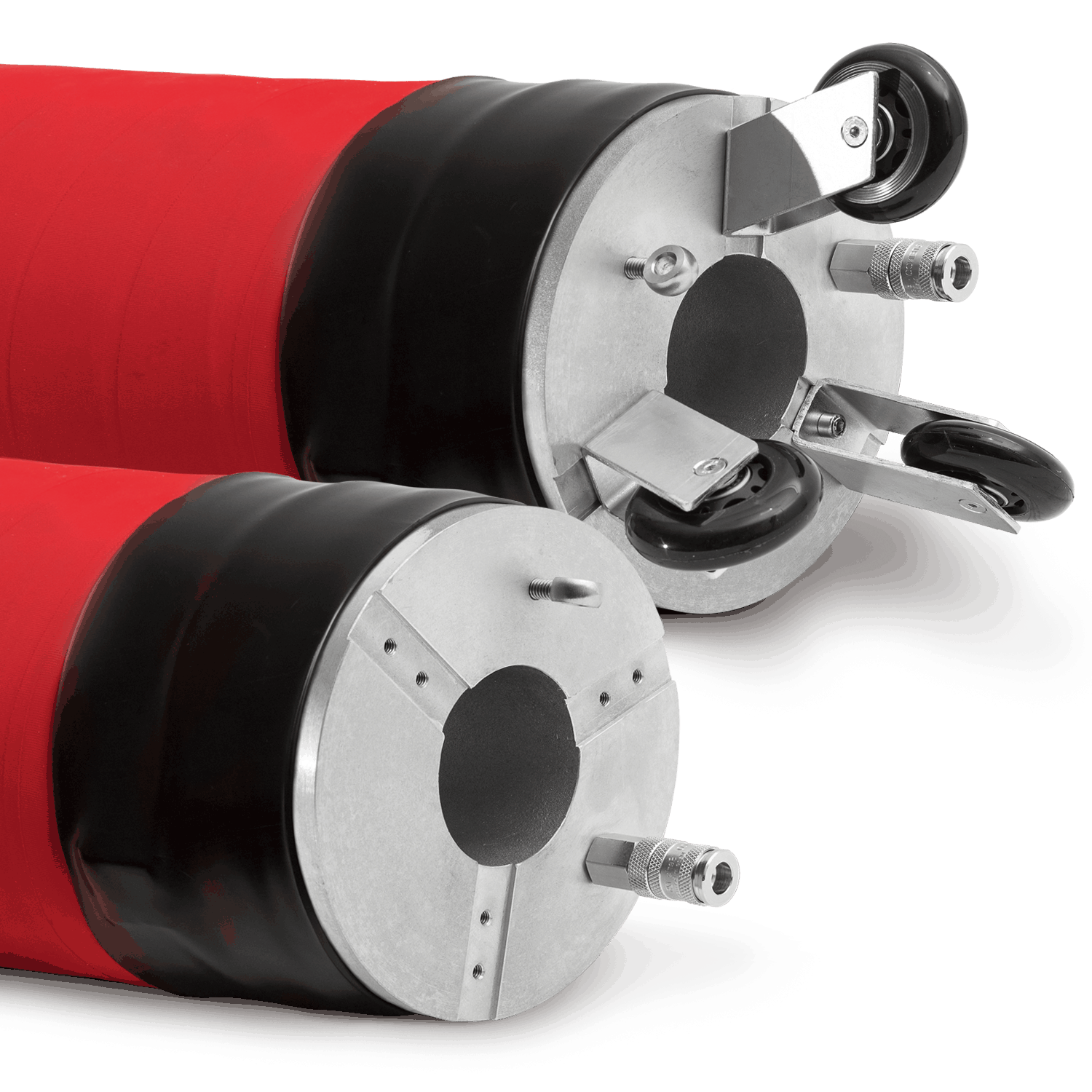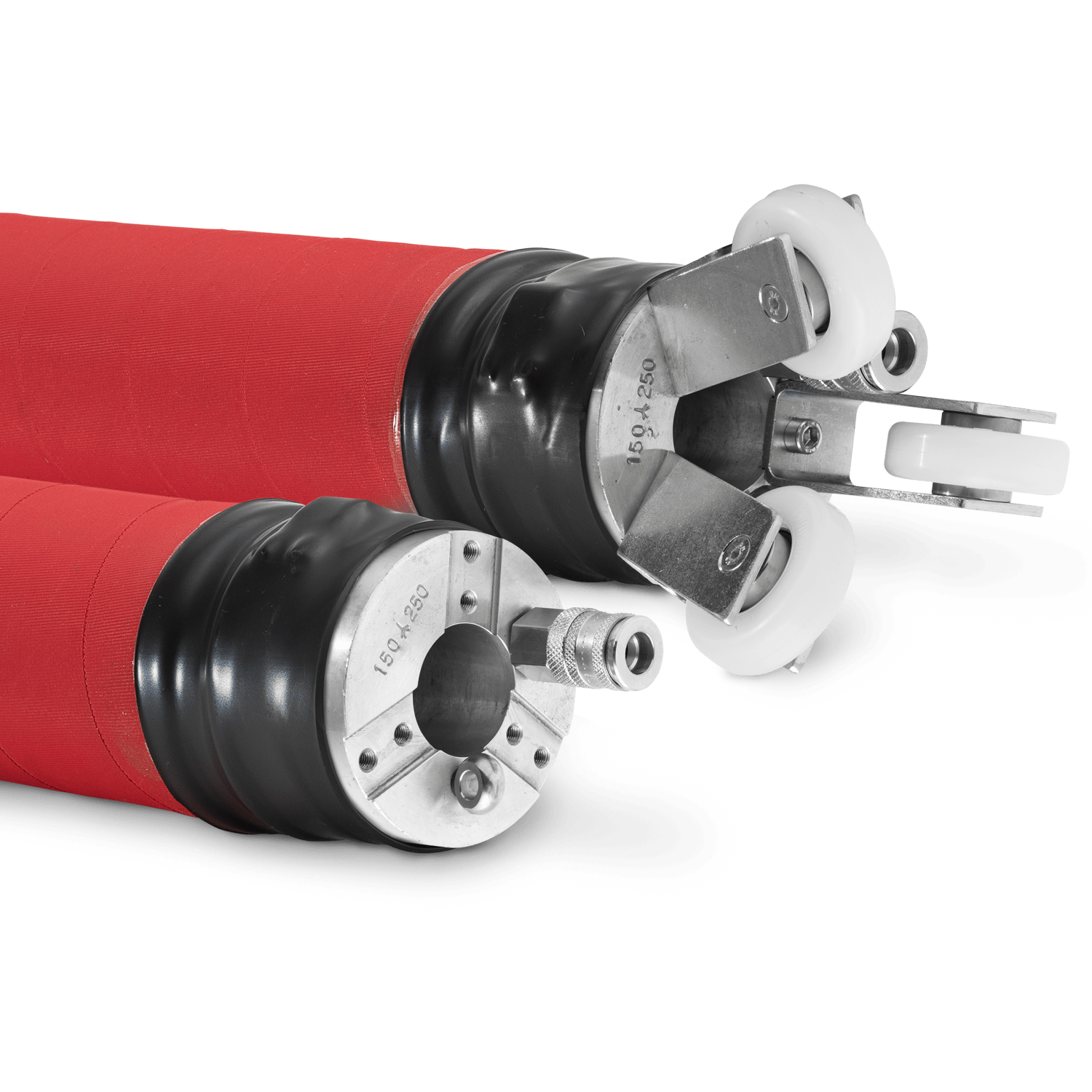 Die Flex-Packer mit Durchgang ermöglichen das Sanieren von Rohrabschnitten auch bei stark wasserführenden Leitungen. Ein Umleiten oder Umpumpen ist nicht notwendig. Der rote Spezial-Blähschlauch mit einer weichen Kautschukmischung ermöglicht dabei besonders glatte Anpressflächen und optimale Übergänge vom Liner.