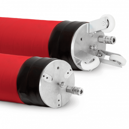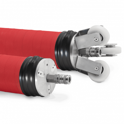 Die Flex-Packer mit optionalen Radwerk vereinfachen das Setzen von Kurz- oder Langlinern auf langen Strecken erheblich. Der rote Spezial-Blähschlauch mit einer weichen Kautschukmischung ermöglicht dabei besonders glatte Anpressflächen und optimale Übergänge vom Liner.