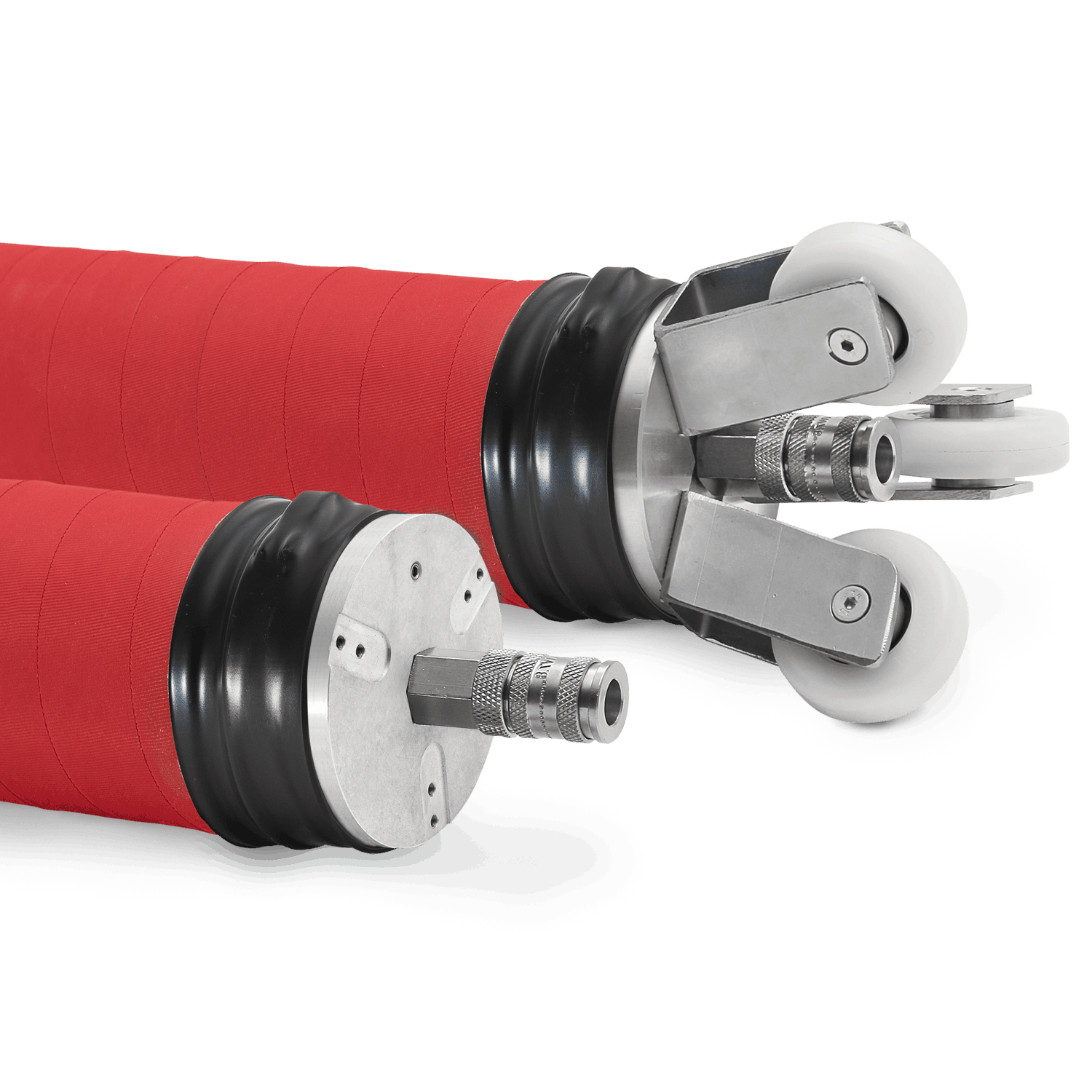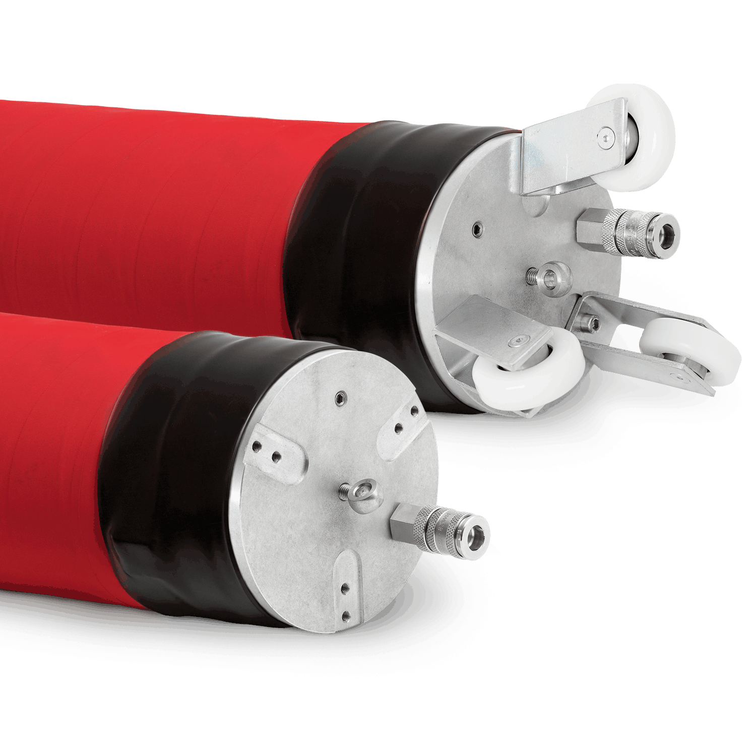 Die Flex-Packer mit optionalen Radwerk vereinfachen das Setzen von Kurz- oder Langlinern auf langen Strecken erheblich. Der rote Spezial-Blähschlauch mit einer weichen Kautschukmischung ermöglicht dabei besonders glatte Anpressflächen und optimale Übergänge vom Liner.