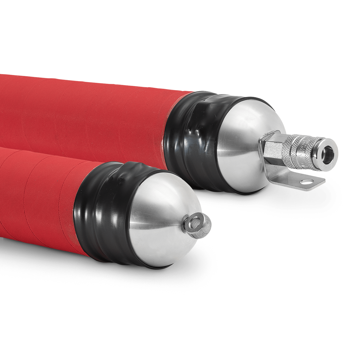- roter, besonders dehnfähiger Blähschlauch (Blähbarkeit bis zu 3x Außendurchmesser) mit abriebfestem Außenmantel (glatt gewickelt, stoffgemustert)