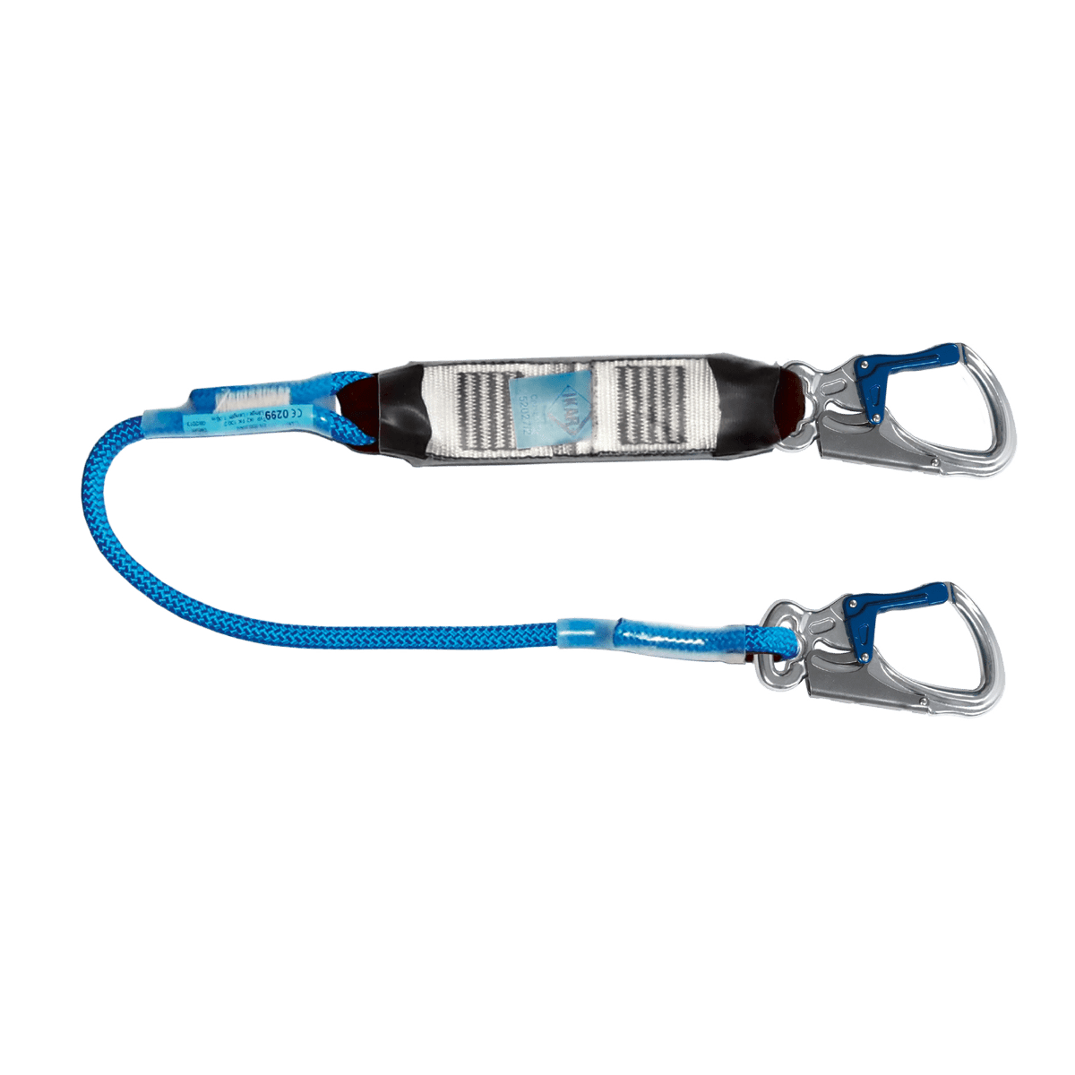 - Aluminium-Karabinerhaken IKV 11 (EN 362:2004) am Seilende und am Bandfalldämpfer