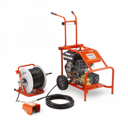 - Manövrierfähig: In der Kategorie der Hochleistungs-Hochdruck-Rohrreiniger 205 bar ist der RIDGID KJ-3100 einer der manövrierfähigsten Rohrreiniger auf dem Markt. Das auf einem speziellen zweirädrigen Gestell montierte Gerät passt leicht durch Türen mit Standardabmessungen und kann problemlos durch enge Kurven manövriert werden.