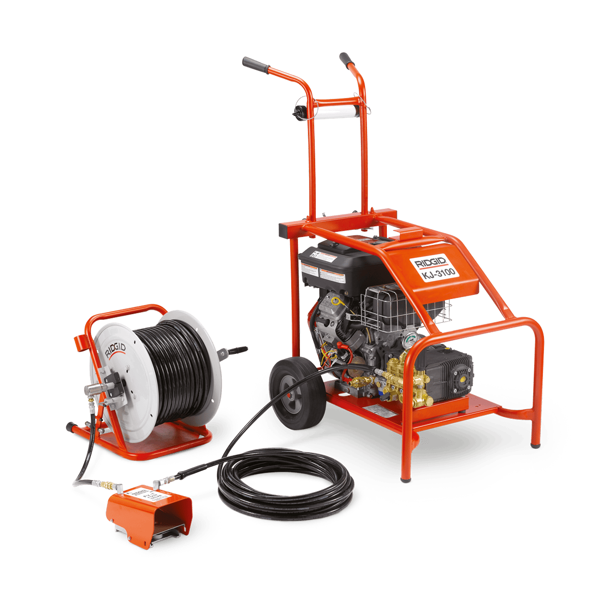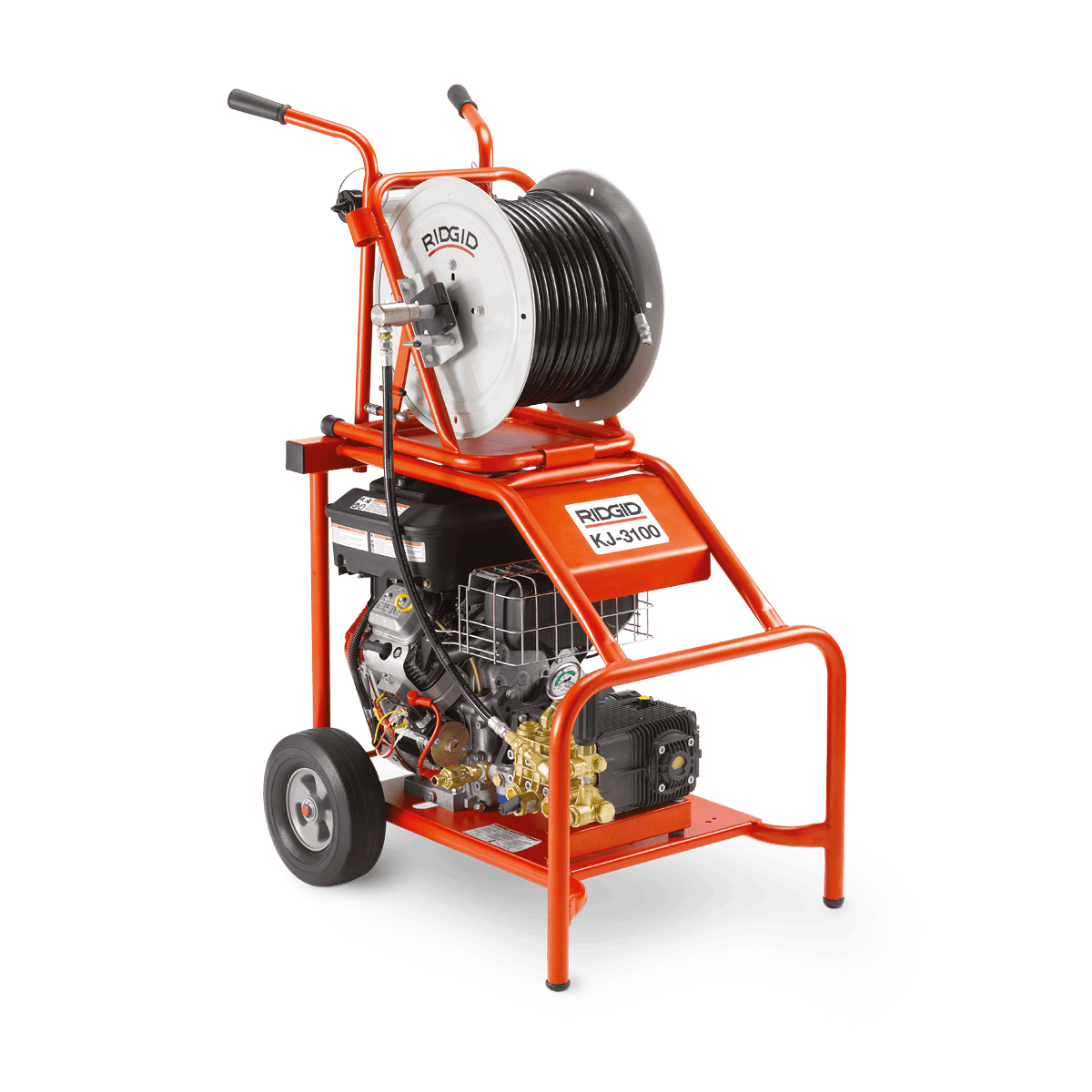 - Manövrierfähig: In der Kategorie der Hochleistungs-Hochdruck-Rohrreiniger 205 bar ist der RIDGID KJ-3100 einer der manövrierfähigsten Rohrreiniger auf dem Markt. Das auf einem speziellen zweirädrigen Gestell montierte Gerät passt leicht durch Türen mit Standardabmessungen und kann problemlos durch enge Kurven manövriert werden.