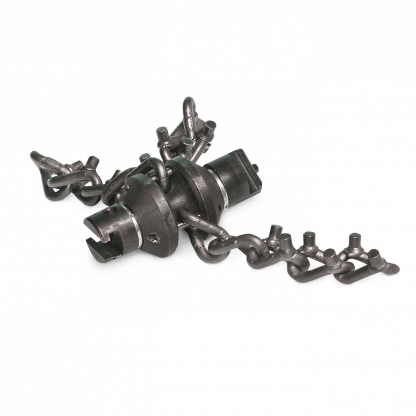 Die Kombikettenschleuder lässt sich beliebig mit anderen Werkzeugen kombinieren, somit kann man verschiedene Werkzeugkombinationen auf die jeweilige Arbeitsbedingung abstimmen. Kombiniere zum Beispiel die Kombikettenschleuder mit einem Kreuzblattbohrer, so kannst du Wurzelblockaden öffnen und die Wurzeln bis zur Rohrwandung in einem Arbeitsgang zu beseitigen.
