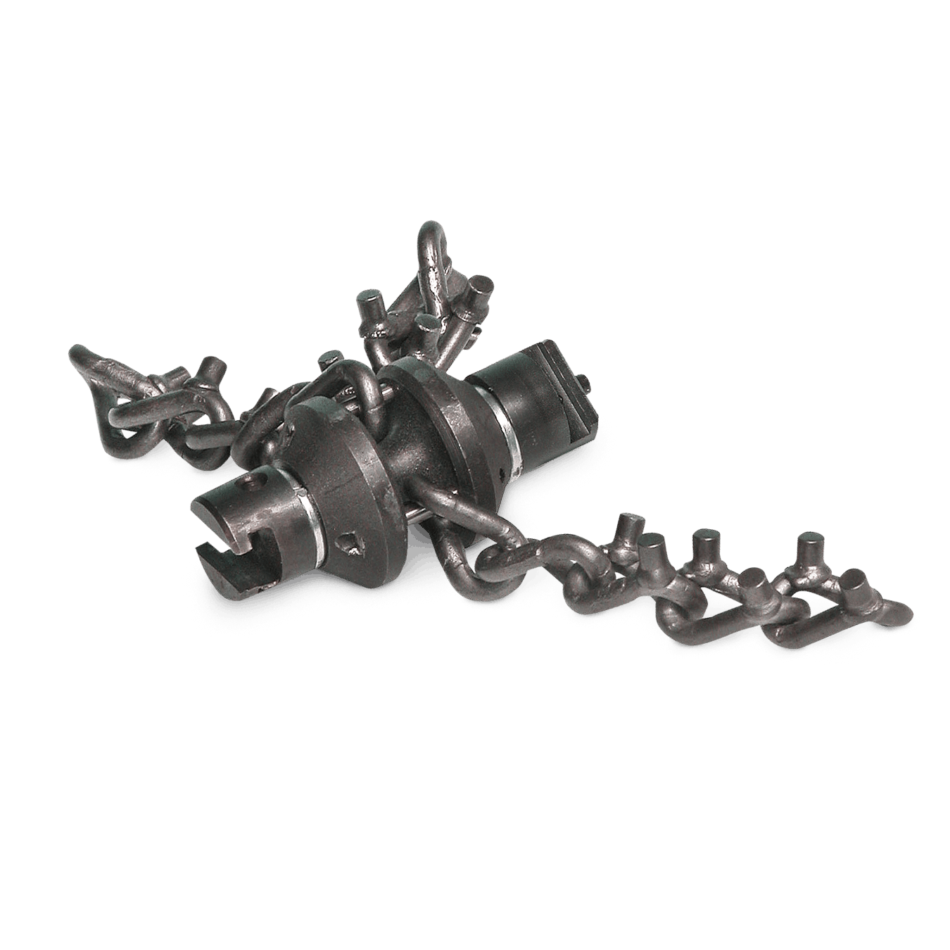 Die Kombikettenschleuder lässt sich beliebig mit anderen Werkzeugen kombinieren, somit kann man verschiedene Werkzeugkombinationen auf die jeweilige Arbeitsbedingung abstimmen. Kombiniere zum Beispiel die Kombikettenschleuder mit einem Kreuzblattbohrer, so kannst du Wurzelblockaden öffnen und die Wurzeln bis zur Rohrwandung in einem Arbeitsgang zu beseitigen.