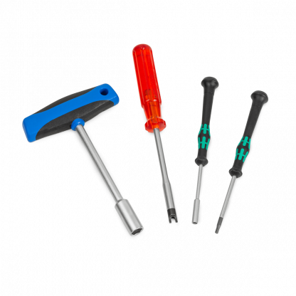 Verschiedene Montageschlüssel zum Wechseln der Düseneinsätze an den Rohr- und Kanalreinigungsdüsen.