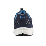 - Obermaterial: Microfasermaterial, Textileinsätze, blaue Nähte, Schnürsenkel weiß