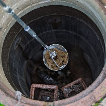 Der Sielbagger Ø 200 dient dem Reinigen von Schächten, Pumpstationen, Gruben und Kleinkläranlagen. Er entfernt Sand, Steine, Blätter, Zweige, Schlamm, Schmutz, Fett sowie alles Große zuverlässig und effektiv.