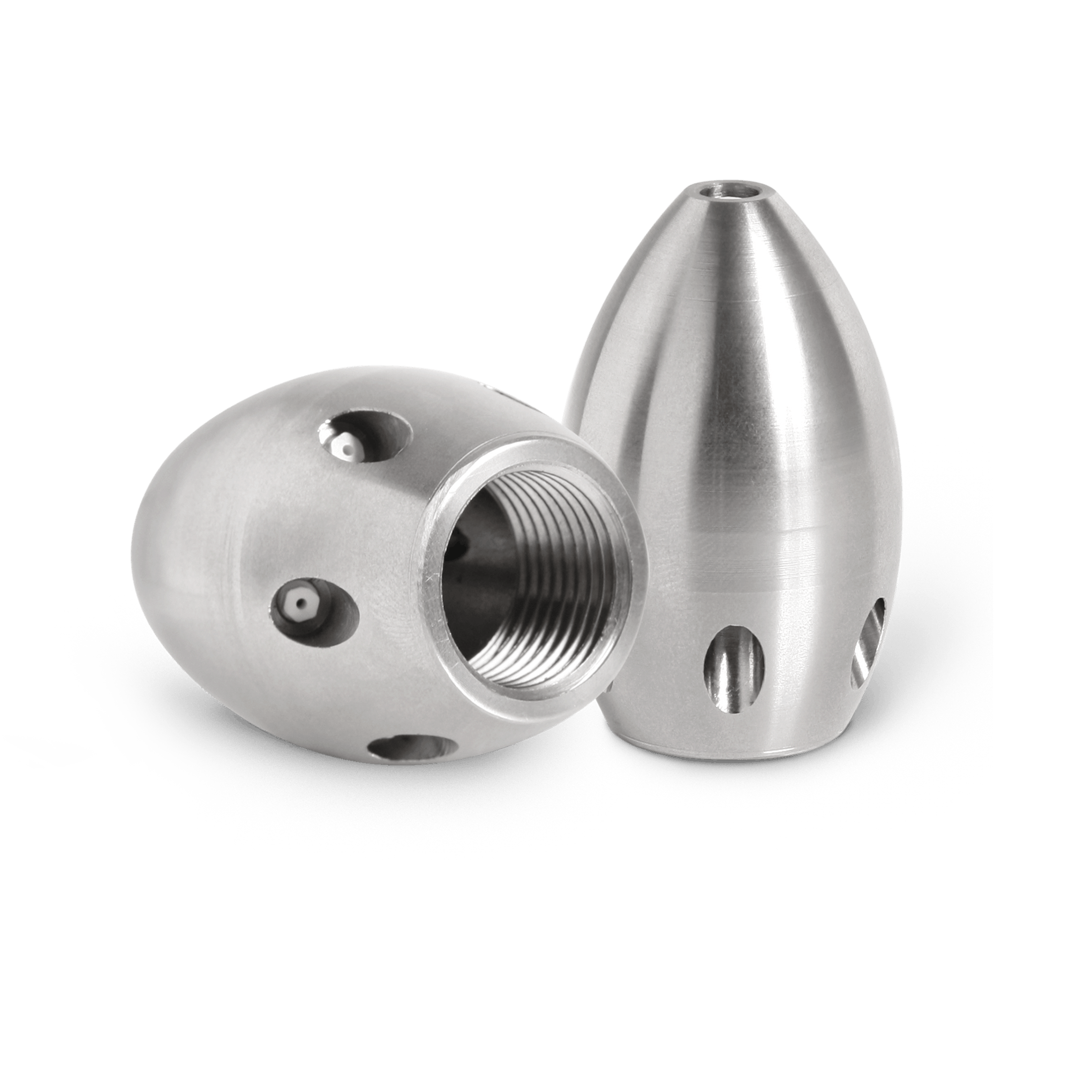 Unsere Standard-Düsen aus VA zeichnen sich durch hohe Langlebigkeit sowie sehr gute Reinigungs- und Zugleistungen aus. Durch die bogengängige Ei-Form eignen sich diese Düsen bestens für den Einsatz im Hausanschlussbereich.