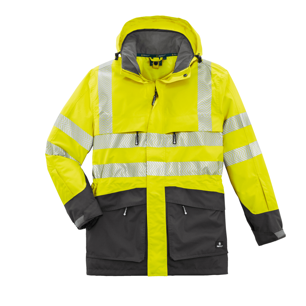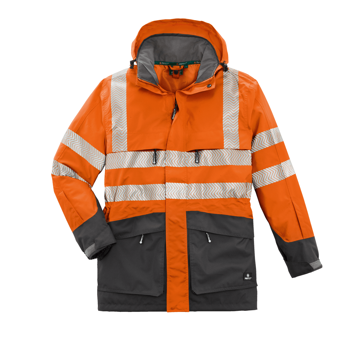 Funktionalität trifft Design. Einsetzbar bei Gefahren durch schlechte Sicht schützt TAMPA mit wind- und wasserdichter Ausstattung auch vor schlechtem Wetter. Unterstützt wird dies durch funktionelle Details, wie einem doppelt abgedecktem Front-Reißverschluss, eine abzippbare Sturmkapuze mit diversen Verstelloptionen sowie der Möglichkeit diverse Jacken/Weste aus dem 4PROTECT®-Programm einzuzippen. Eine hohe Atmungsaktivität gestattet zudem eine lange Tragedauer.