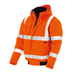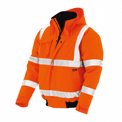 Die Pilotenjacken in Wind- und wasserdichte Ausstattung mit Reflexstreifen (ca. 5 cm breit), umlaufend um Körper und Ärmel sowie über die Schulterpartien (Hosenträgerreflexstreifen).