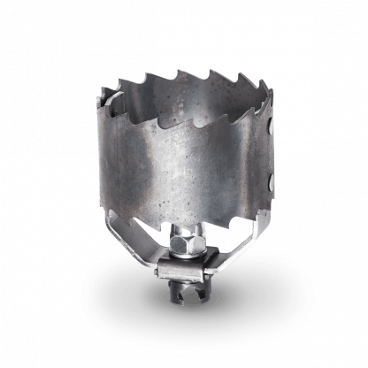 Die zweiseitig gezackte Schneidkrone zerschneidet schnell und zuverlässig starke Wurzeln, eingespülte Äste oder anderes Material, z.B. Liner. Durch das beidseitige Sägezahnprofil der Schneidkrone sägt diese sowohl unter Schub, als auch unter Zug.