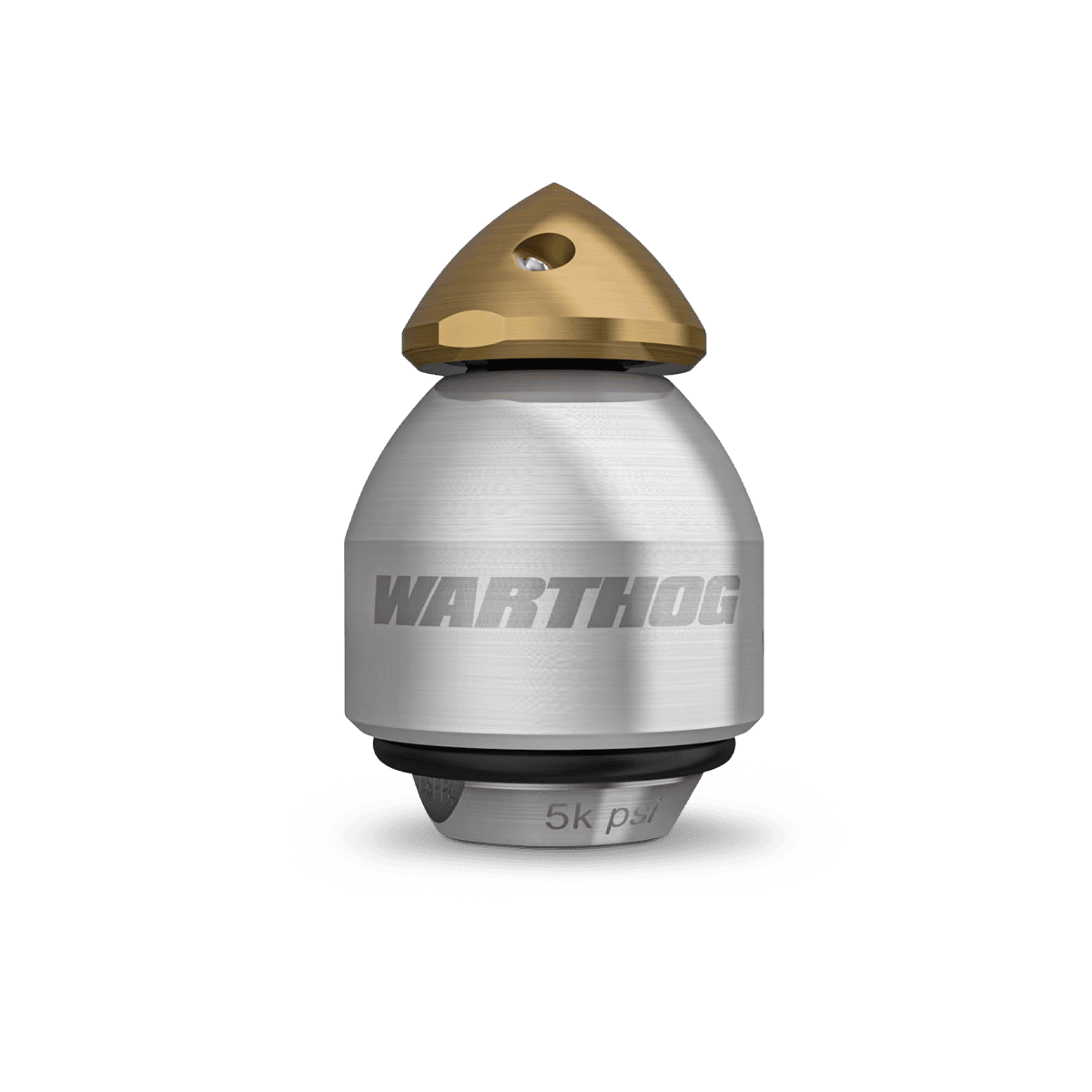 Die Warthog WV Classic Rotationsdüse überwindet ohne Probleme mehrere Bögen und Biegungen in kleinen Rohren ab 50 – 100 mm und dient dem Entfernen von Wurzeln, Eis und anderen Blockaden. Der Kopf kann bei Verschleiß ausgetauscht werden, um die Lebensdauer zu verlängern.